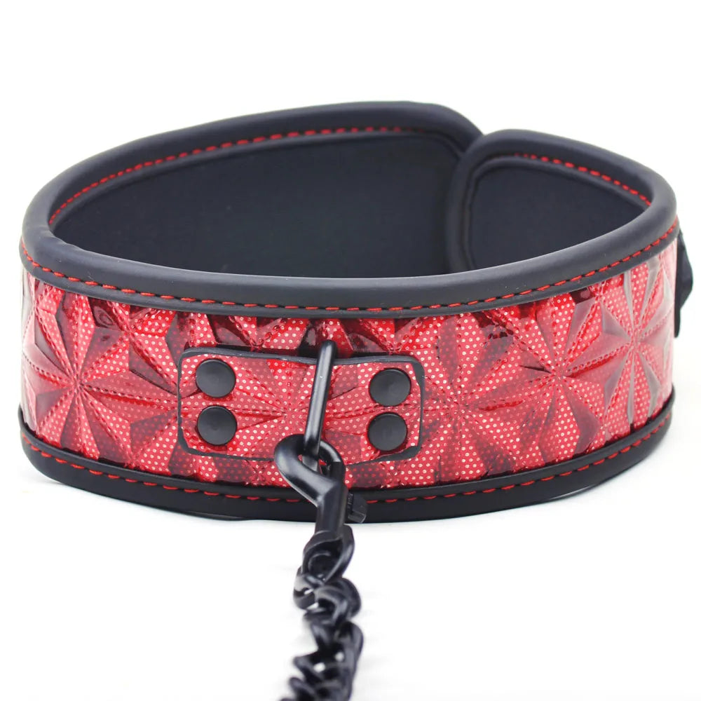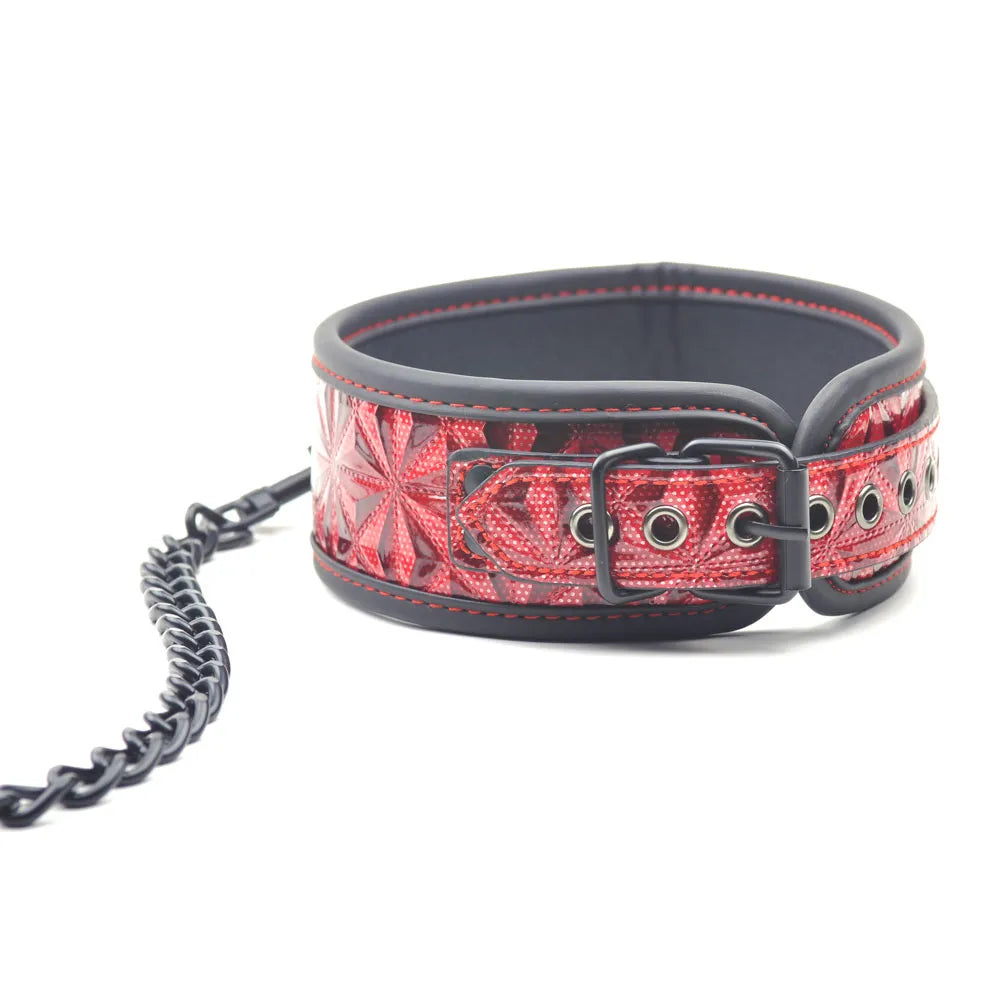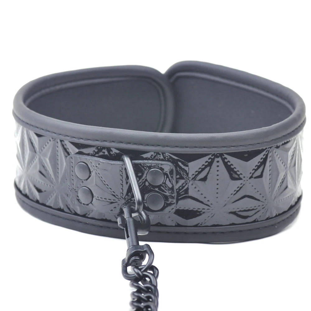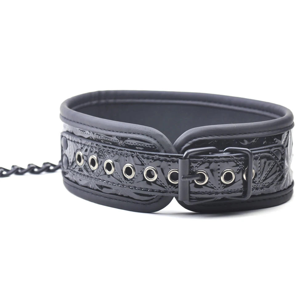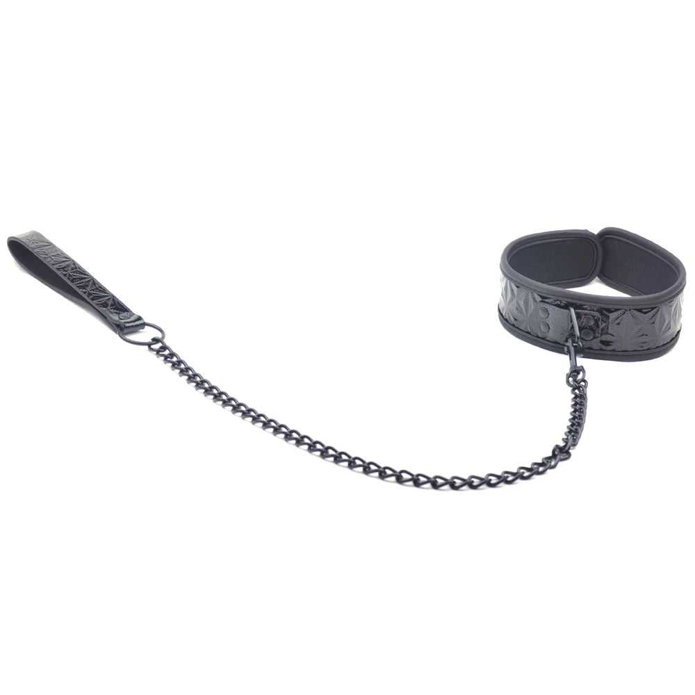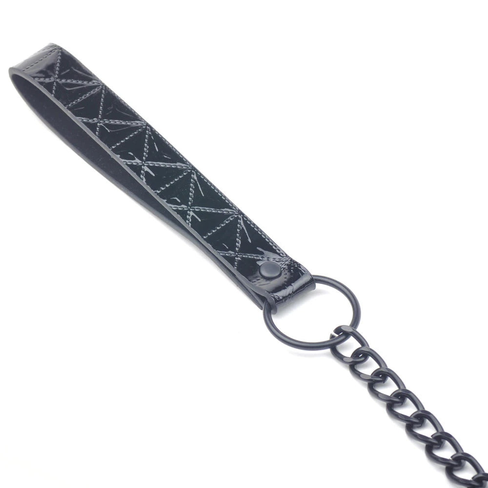 Give your sub a lesson in obedience with this advanced Collar with chain leash with handle. Compatible with most collars, cuffs and restraints, attach this long chain to literally take the lead in the bedroom and show your sub who's boss.