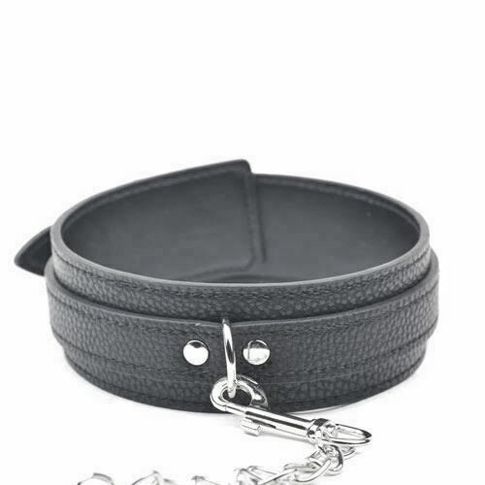 Give your sub a lesson in obedience with this advanced Collar with chain leash with handle. Compatible with most collars, cuffs and restraints, attach this long chain to literally take the lead in the bedroom and show your sub who's boss.