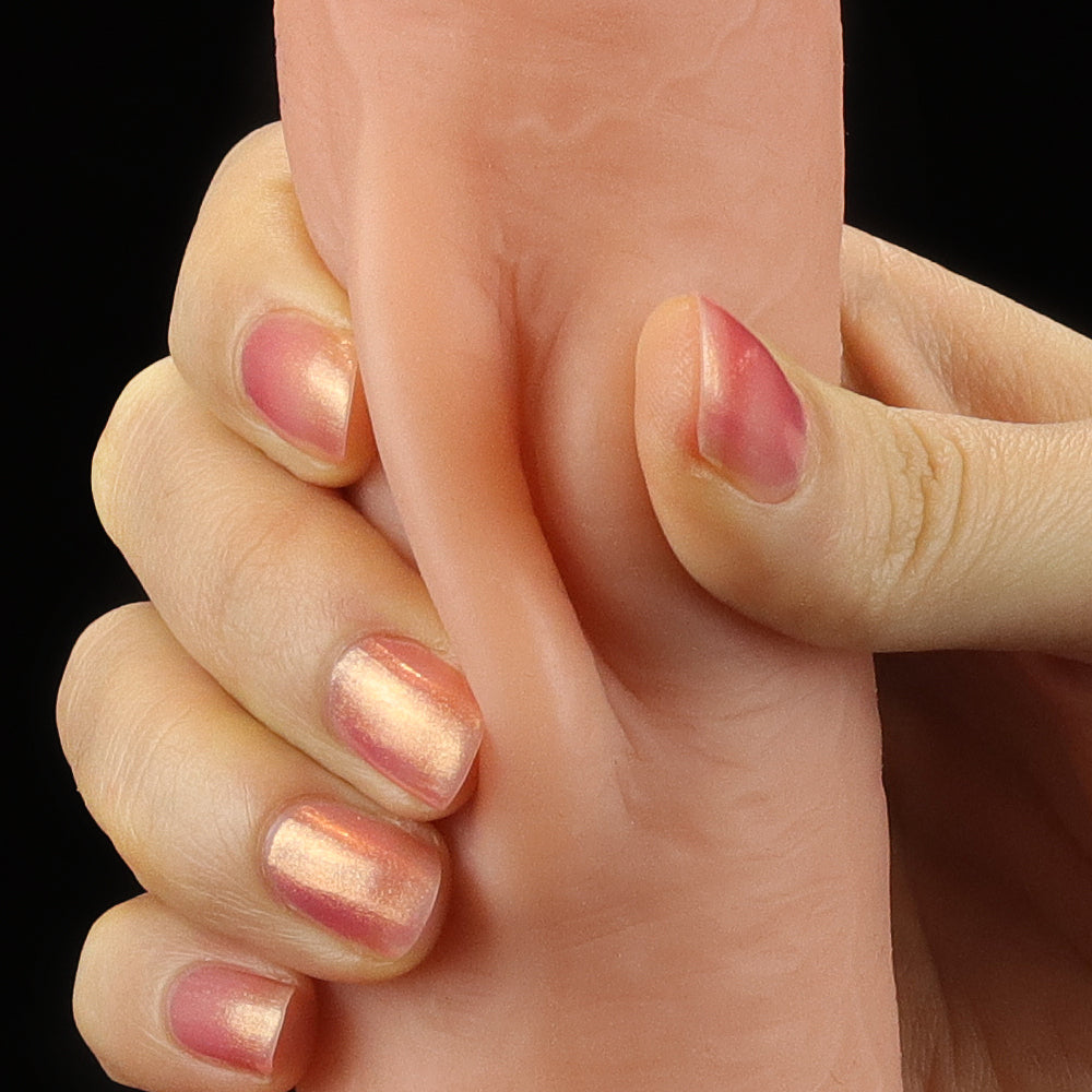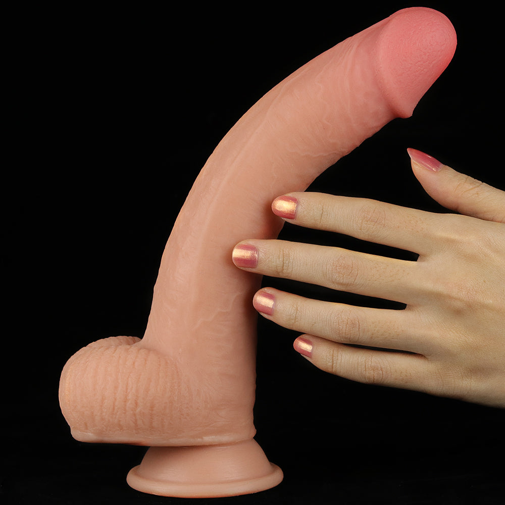 Made of realistic dual-layer sliding-skin material for Iifelike feel, with special dual density technology to simulate the feeling of an erect penis, this dildo features a soft outer skin and satisfyingly firm inner.