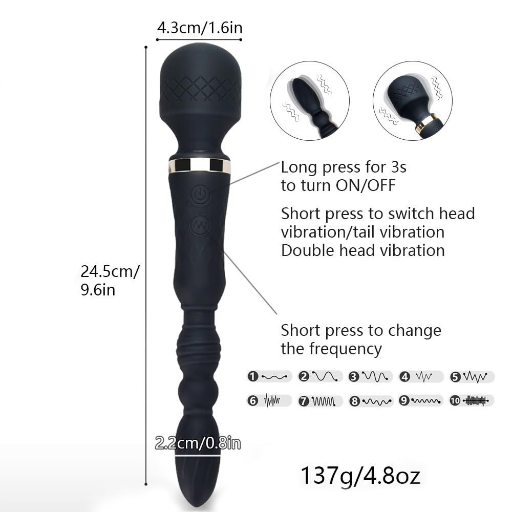 Rechargeable Double Ended Vibrating Massage Wand & Anal Vibrator, 10 Function