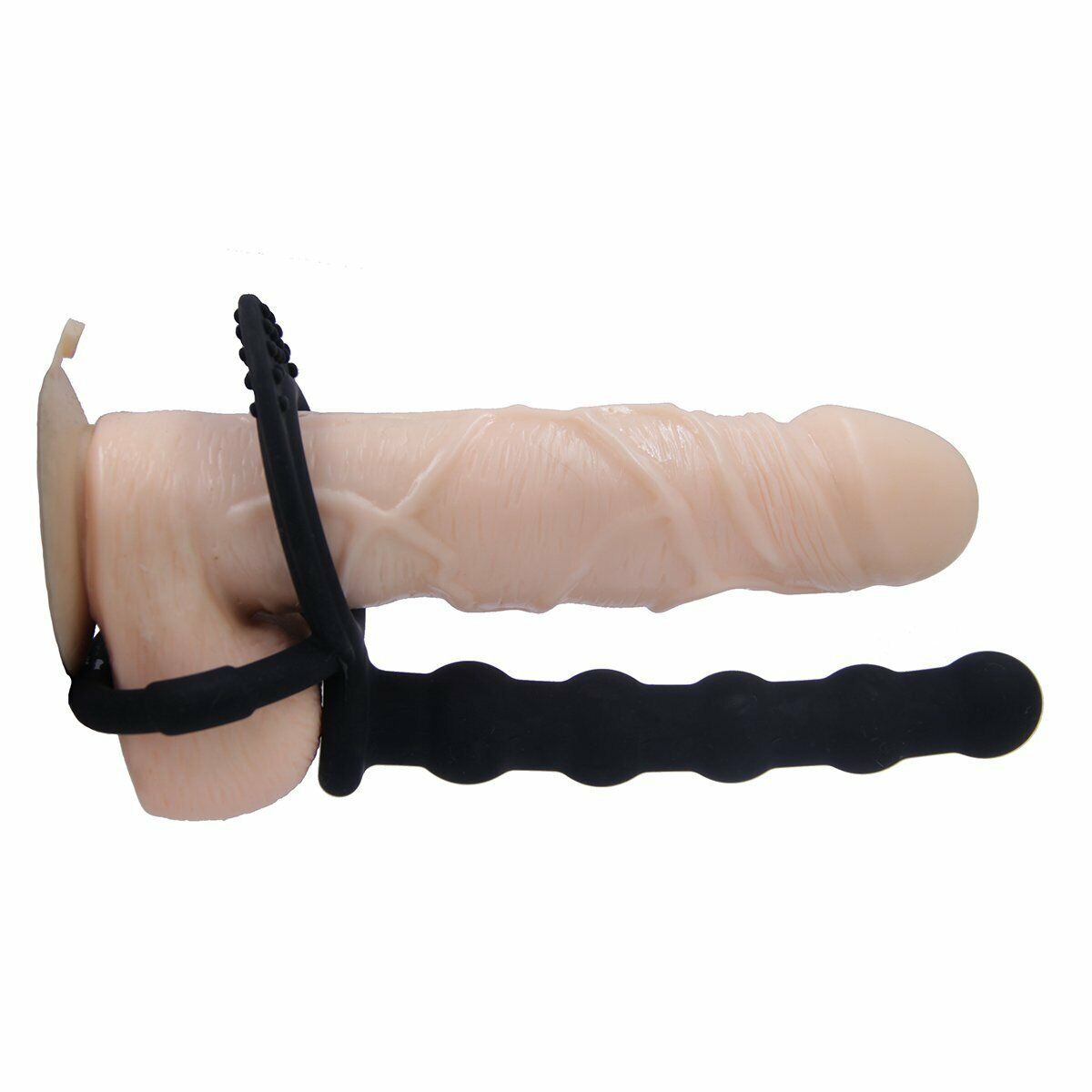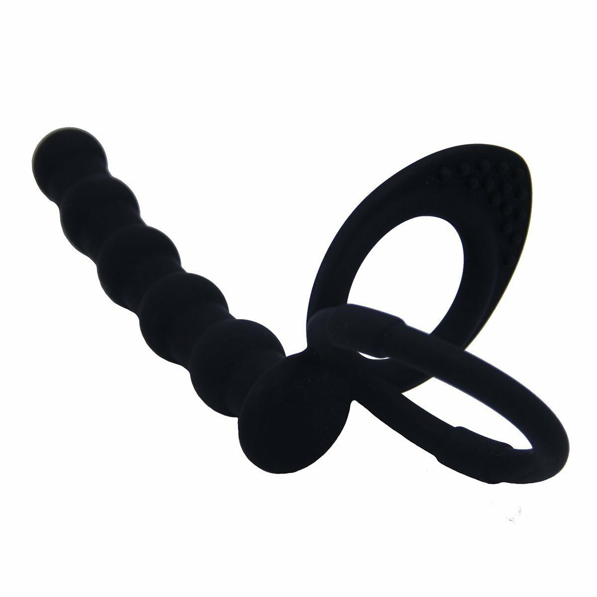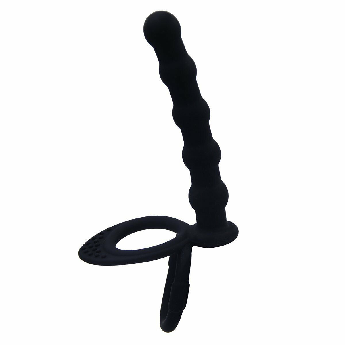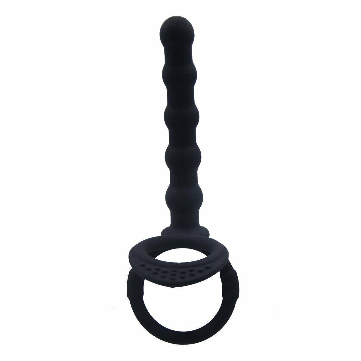 Silicone Beaded Anal Probe Penis Ring with Clitoral Stimulator for Double Penetration