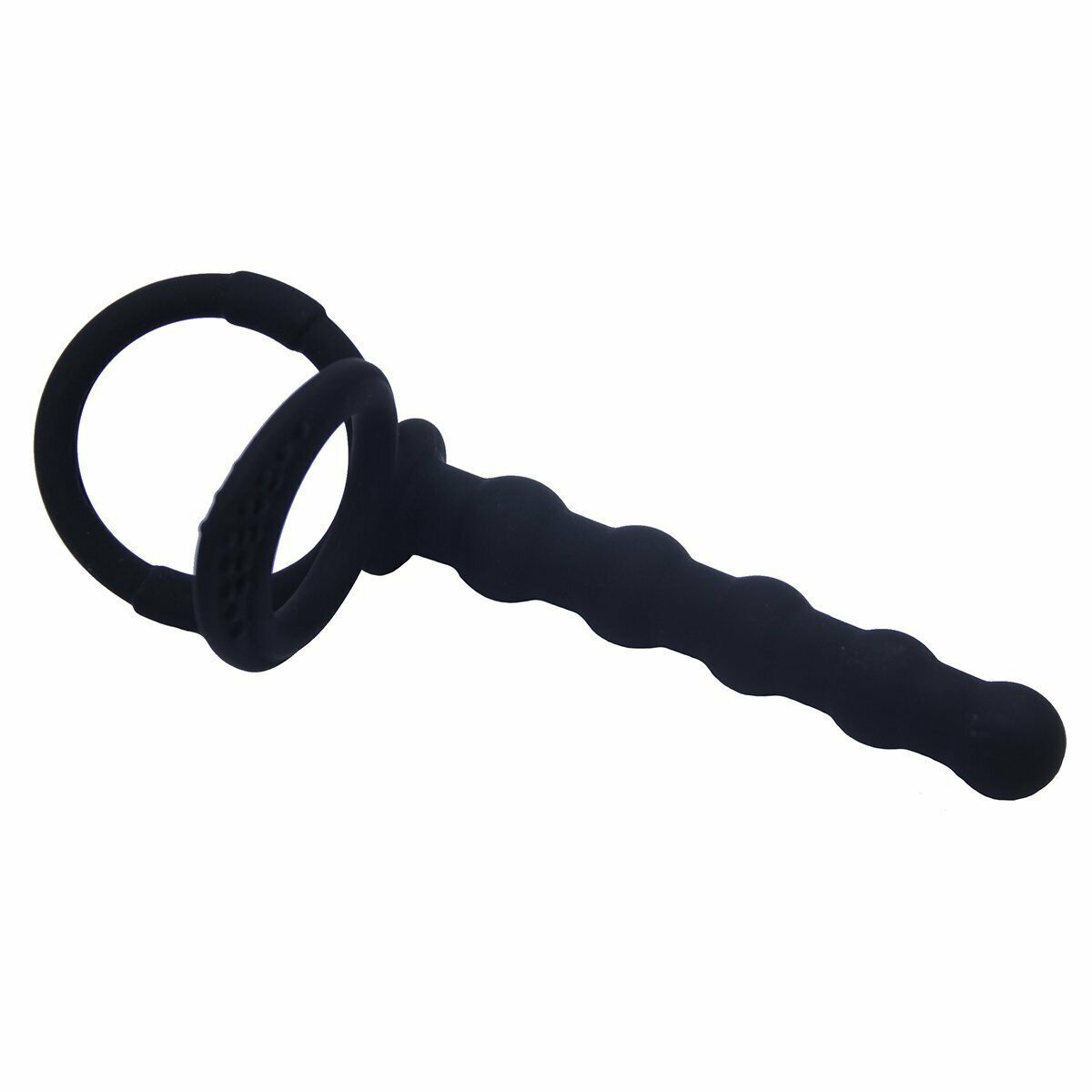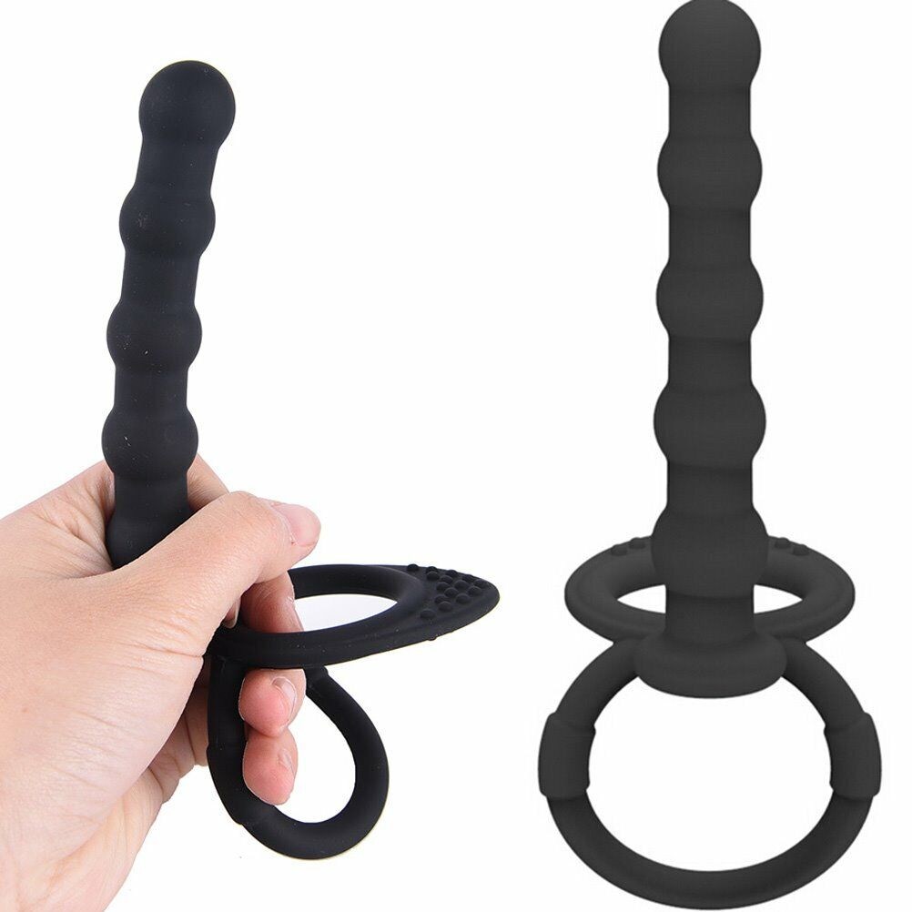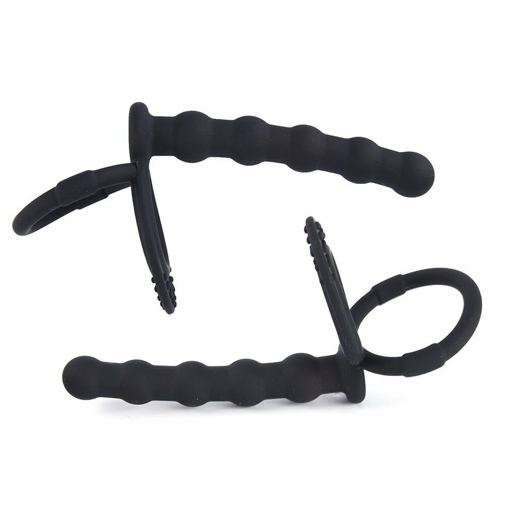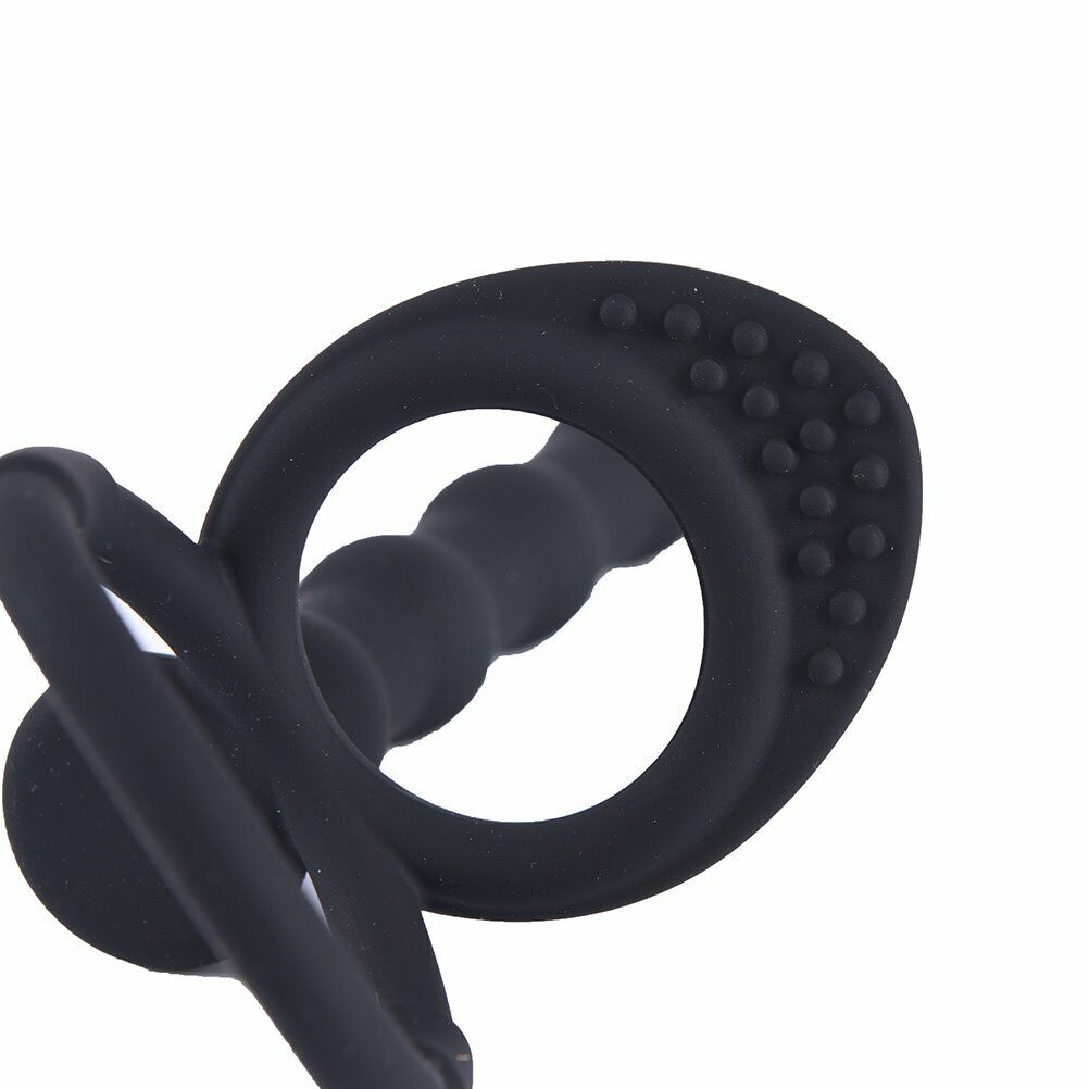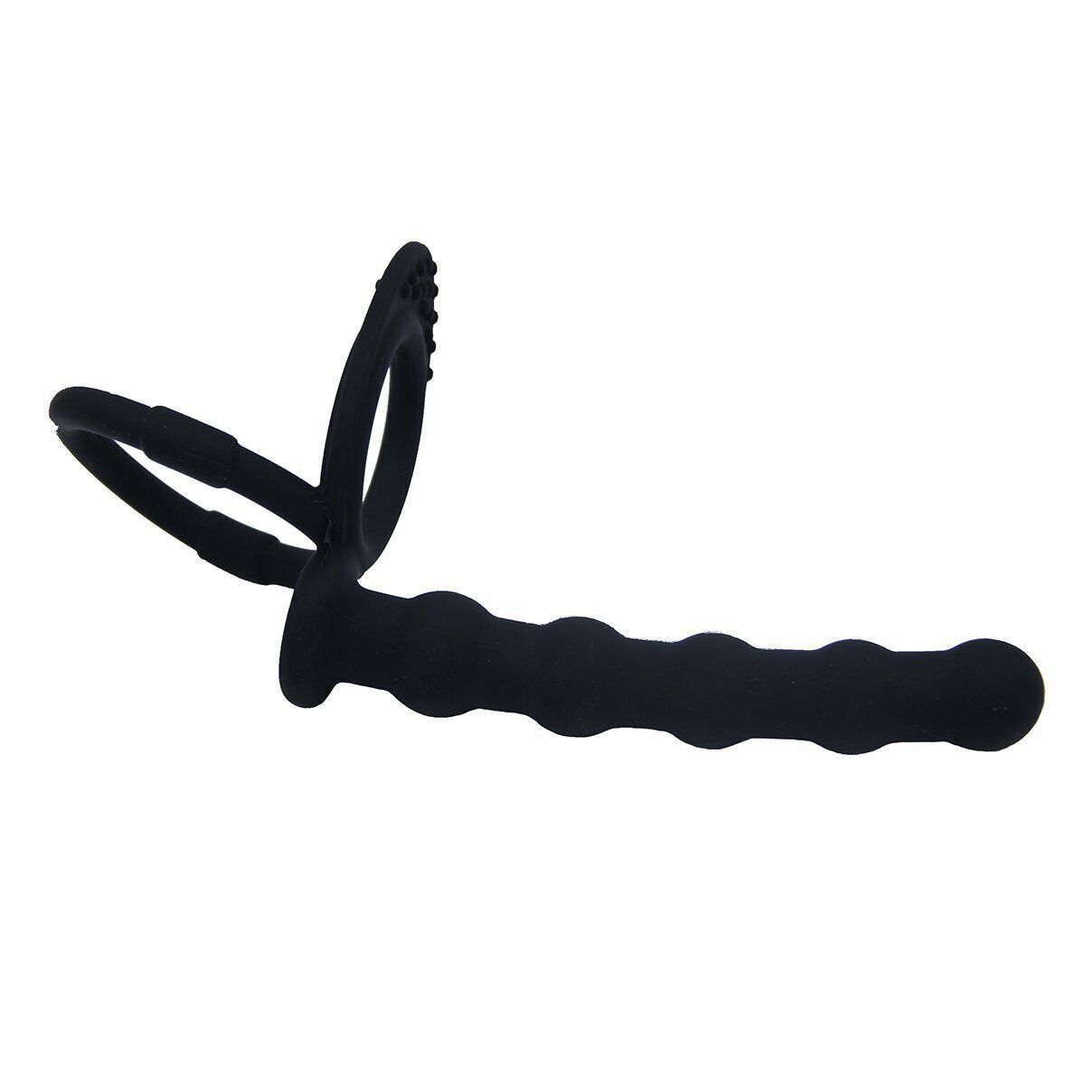 Silicone Beaded Anal Probe Penis Ring with Clitoral Stimulator for Double Penetration