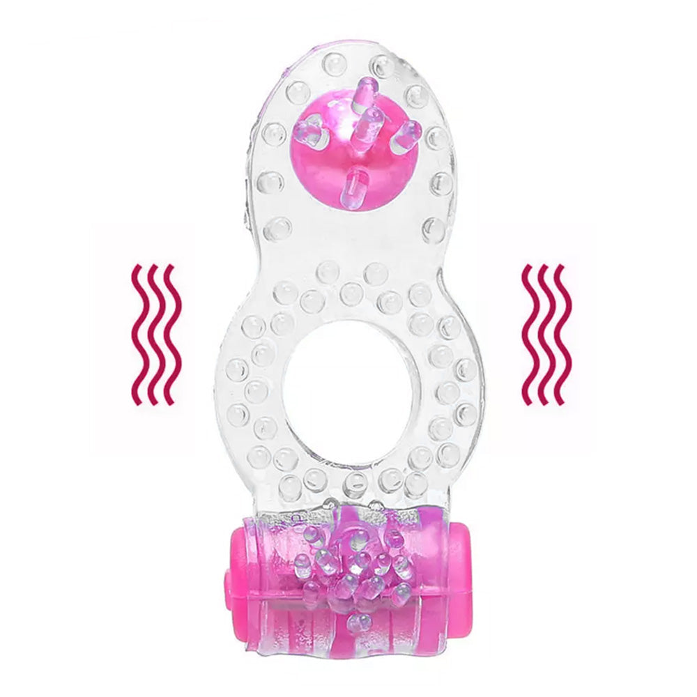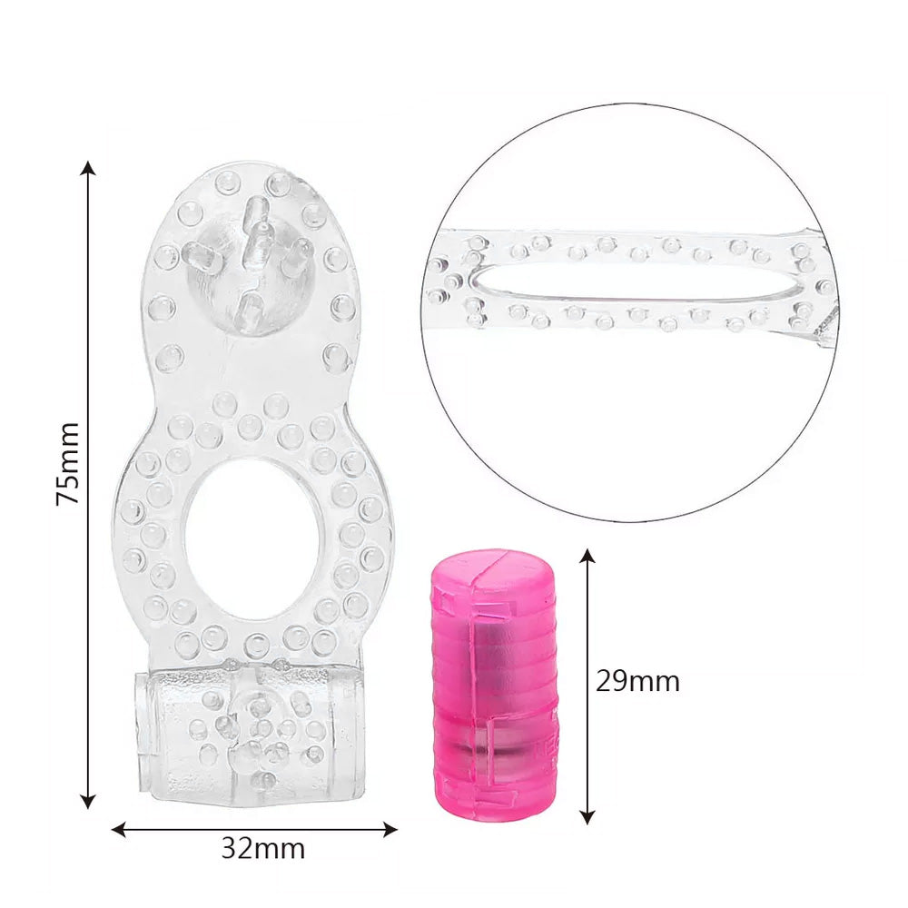 Easy to put on with its soft stretchy ring, this item can be worn up side or upside down. Simple, stretchy, and oh-so-fun! The Double Trouble Cock Ring gives your cock and balls amazing support and stimulation. Then use the cock ring's buzzing vibrator to tickle and tease your lover's clit or ass. This sexy cock ring will have you both exploding with satisfaction!!